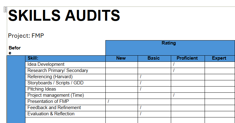 weaknesses– i think my weaknesses include a lot of the written aspect of a project, such as my grammar being poor and not explaining my processes in depth. This meaning i would usually struggle with the evaluation and reflecting part of my work.