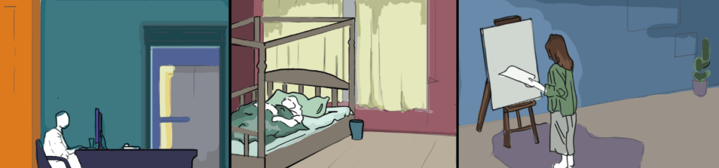 To collect primary research im going to have a group discussion at my sisters uni flat as this is a diverse range of people all living in a flat together, I think this will link to my idea well as im trying to portray a range of people investing time in their personal projects and this will be an easy way to find people to interview. I am also able to take inspiration from the layout of the flat, since my animation is through windows it will be helpful to get reference pictures and videos of rooms that are all the same size.