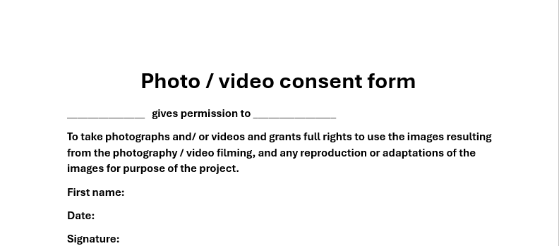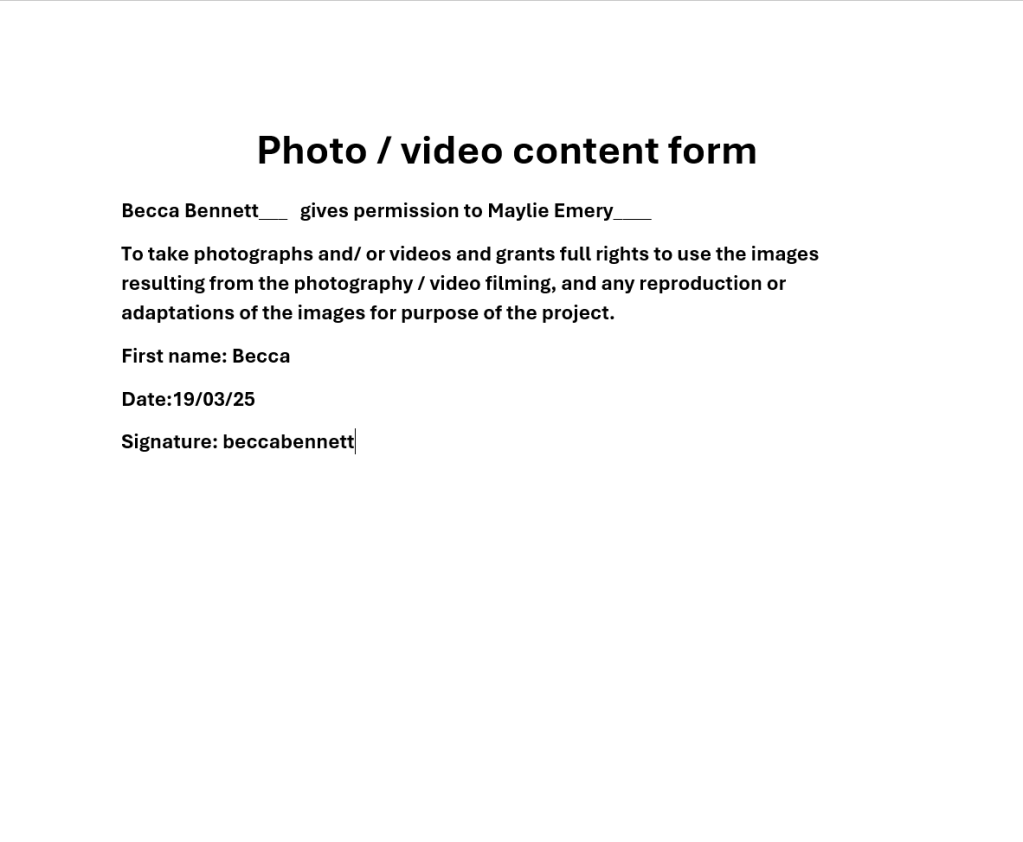 These are the completed consent forms to make sure the people in the reference photos and videos agree to have them used in my project.