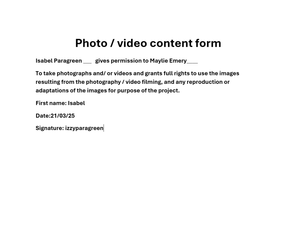I have also made a consent form for my sisters flatmates to sign so i have permission to use their photos and videos for my project. I have chosen to use my sisters flat as a reference