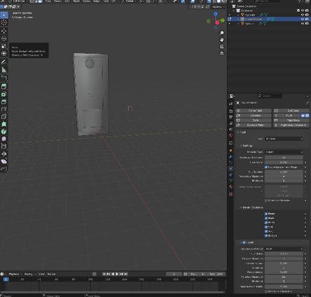 I then clicked shift A and added a sphere above and lined it up with the container. Then changed the sphere to liquid with the add tab in the top left
